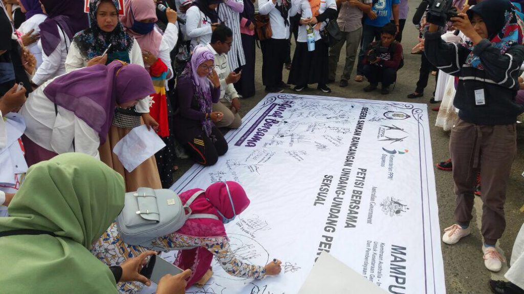 Mewakili elemen sipil, Presidium Balai Syura, Suraiya Kamaruzzaman menyatakan komitmen gerakan perempuan sebagai berikut “Balai Syura sebagai rumah besar gerakan perempuan Aceh, akan konsisten berupaya bersama dengan pemerintah dan berbagai pihak yang konsen pada isu perempuan untuk terus mengkampanyekan penghapusan kekerasan terhadap perempuan, dan memastikan terpenuhinya hak perempuan korban. Kita tidak berhenti hanya pada aksi ini saja, tetapi akan kita lanjutkan upaya-upaya pemenuhan hak perempuan di Aceh melalui kerja-kerja advokasi kebijakan dan pendokumentasian data kasus kekerasan terhadap perempuan dan anak melalui Jaringan Pendokumentasian Aceh (JPA 231)”. Dukungan elemen sipil ini juga ditegaskan oleh ketua Badan Koordinasi Organisasi Wanita (BKOW) Aceh, Juwita dan beberapa perwakilan kelompok dan organisasi yang turut melakukan orasi pada kesempatan tersebut.