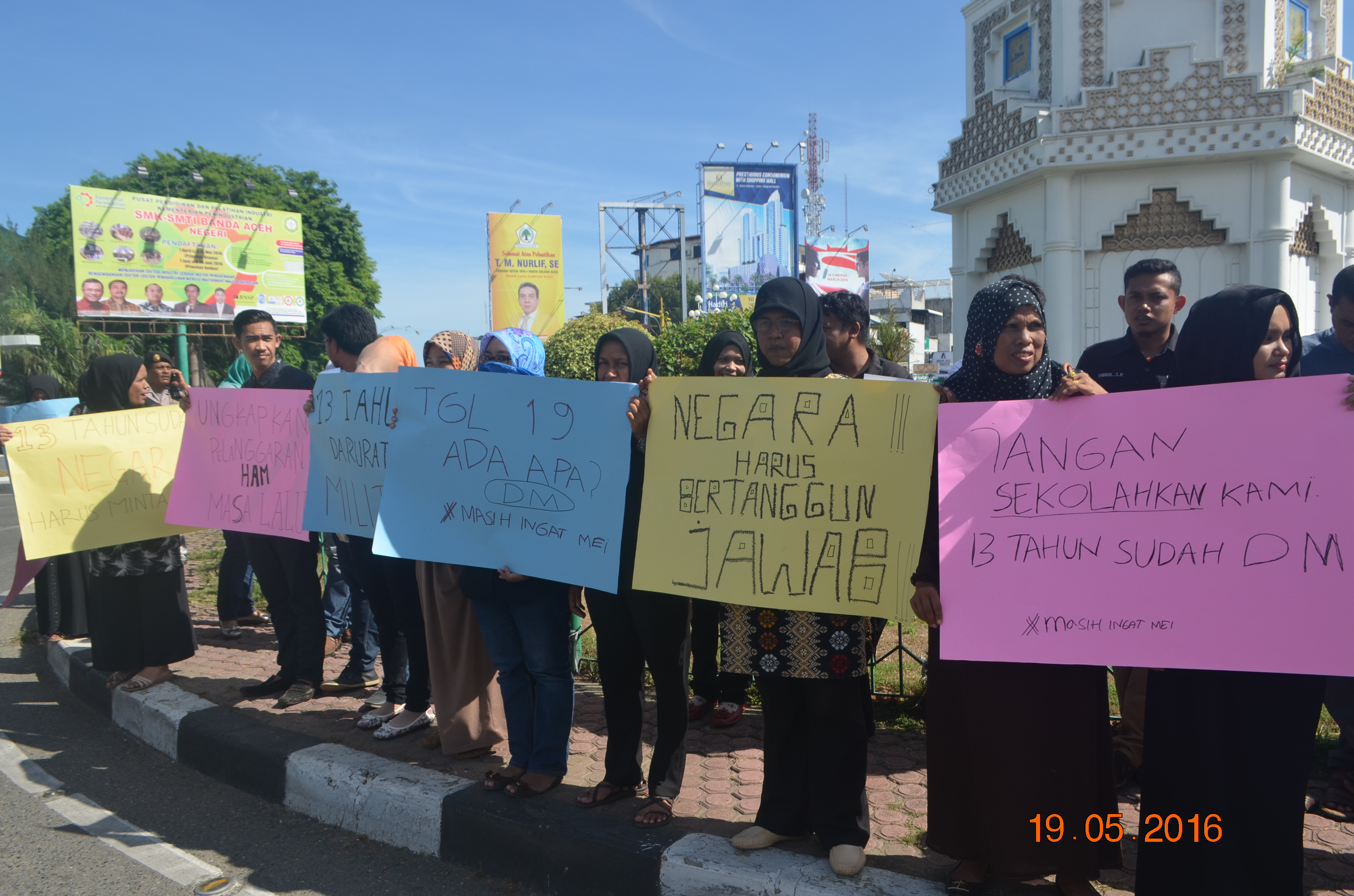 Tetapi perdamaian Aceh belum dibarengi dengan pemenuhan hak terhadap korban pelanggaran HAM di masa lalu, Bulan Mei adalah bulan yang penuh dengan peringatan terkait dengan kejadian masa lalu khususnya terkait dengan pelanggaran HAM berat yang terjadi akibat Konflik Aceh dan juga penerapan Acen sebagai Daerah Darurat Militer [DM].