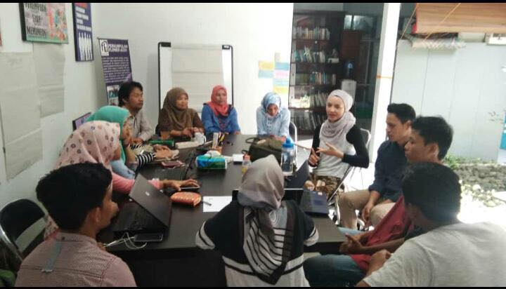 Sharing informasi seputar isu remaja dan kasus kekerasa di Australia dan Aceh bersama Balawyn Jones, Kandidat Doktor di Melbourne Law, The University of Melbourne dan King Ronald Silalahi dari Pesada, Sumatera Utara. Sekolah HAM Perempuan Flower Aceh, 19 September 2018. Foto by Atika Putri