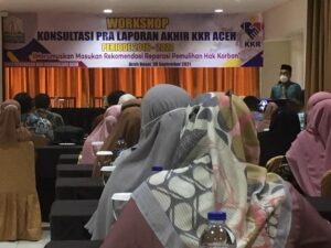 Kegiatan Workshop Kegiatan Konsultasi Pra Laporan Akhir KKR Aceh di Kabupaten Aceh Besar ini bertujuan untuk mendapatkan masukan terhadap pra laporan akhir KKR Aceh Periode 2016-2021.